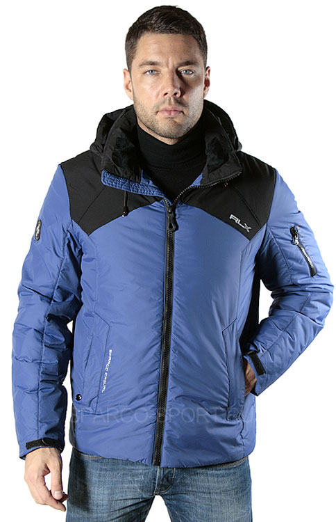 Мужская куртка из нейлона с отстегивающимся капюшоном. Подкладка из: полиэстера. Наполнителем служит тонкий синтепон. Возможные цвета: голубой и серый, с черной отделкой на плечах и рукавах. Капюшон и открытая молния черного цвета. На куртке есть две небольших оригинальных эмблемы - на рукавах и возле передних карманов.