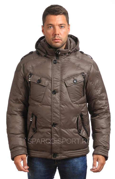 Стильная мужская куртка, выполненная из нейлона с полиэстером и утепленная холлофайбером. Имеются четыре вместительных кармана, снабженных клапанами, закрывающимися на массивные пуговицы. Куртка застегивается под горло на молнию, спрятанную под планкой, оснащенной четырьмя пуговицами. Имеется два цветовых исполнения: глянцевый коричневый и глянцевый темно-синий.