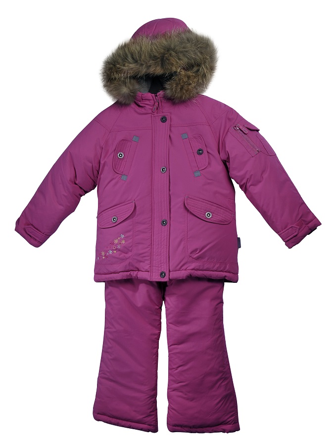 Описание: Комплект состоит из внешней куртки на холофайбере, внутрь которой пристегивается пуховая подстежка. Отделка капюшона - енот. Полукомбинезон с грудкой, регилирующими бретельками и внутренней резинкой по низу брюк