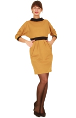 Воротник, манжеты рукавов и кокетка-пояс черного цвета.