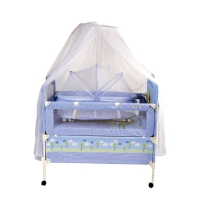 В комплекте: мягкая съемная защитная стенка, подвесная люлька с противомоскитной сеткой, балдахин, ортопедический матрас.