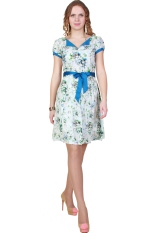 Отделка горловины, манжеты рукавов и пояс, завязывающийся по талии, из однотонного атласа.