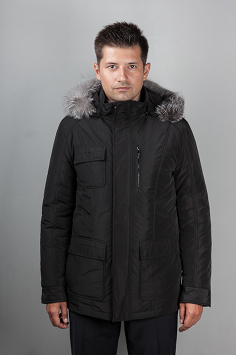 синтепон 250 г/м2 съемная опушка из натурального меха (финский енот, песец) воротник стойка, на молнии, двойная планка на кнопках, шлица на кнопках по спинке