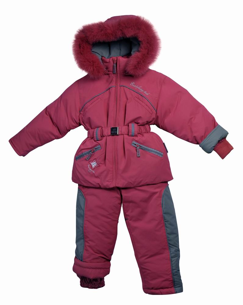 Описание: Комплект состоит из куртки на пуху с отделкой на капюшоне натуральным мехом - лиса и полукомбинезона с грудкой с регилирующими бретельками и внутренней резинкой по низу брюк.