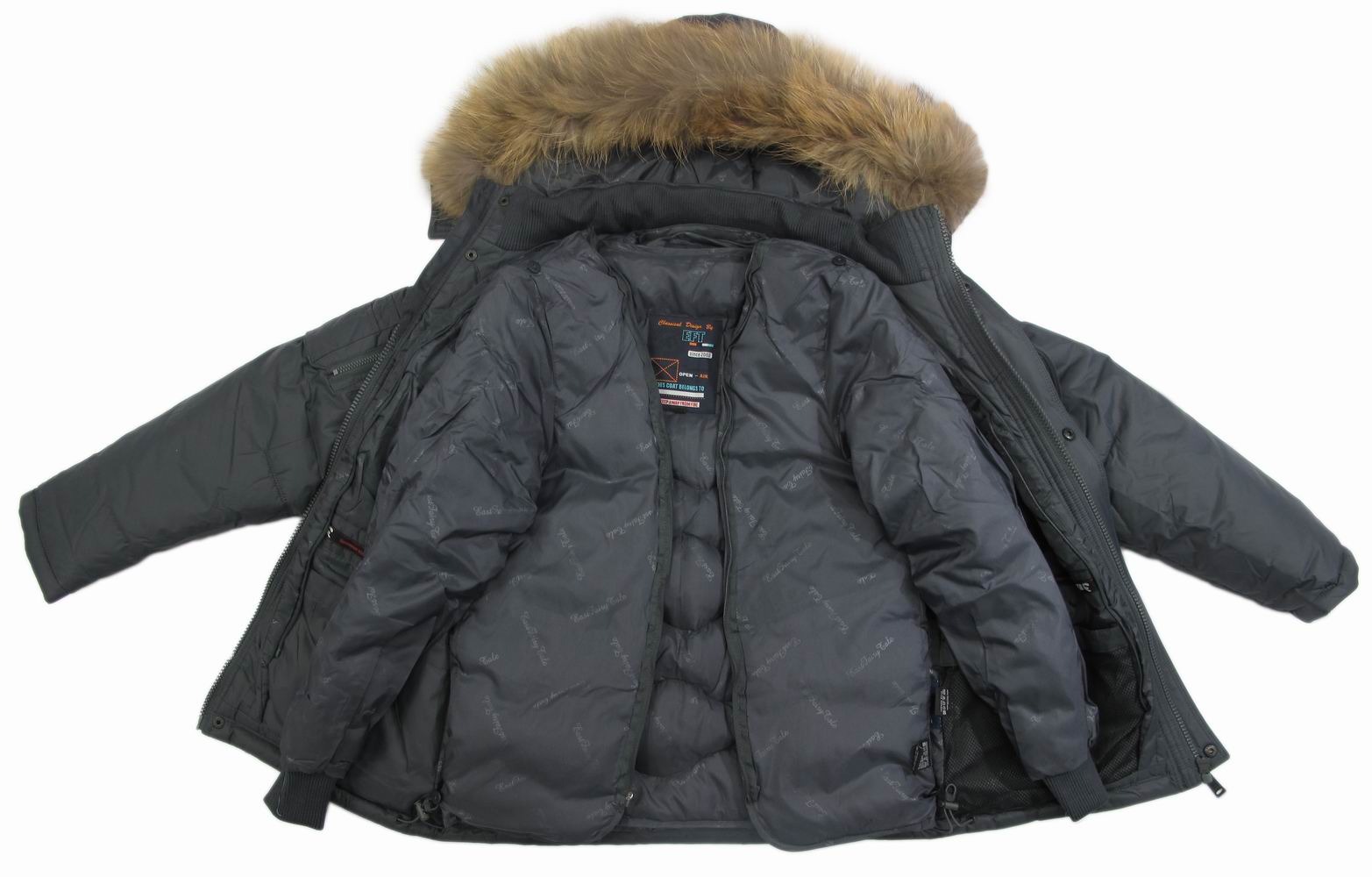 Описание: Куртка состоит из внешней куртки на холофайбере, внутрь которой пристегивается пуховая подстежка. Отделка капюшона - енот.