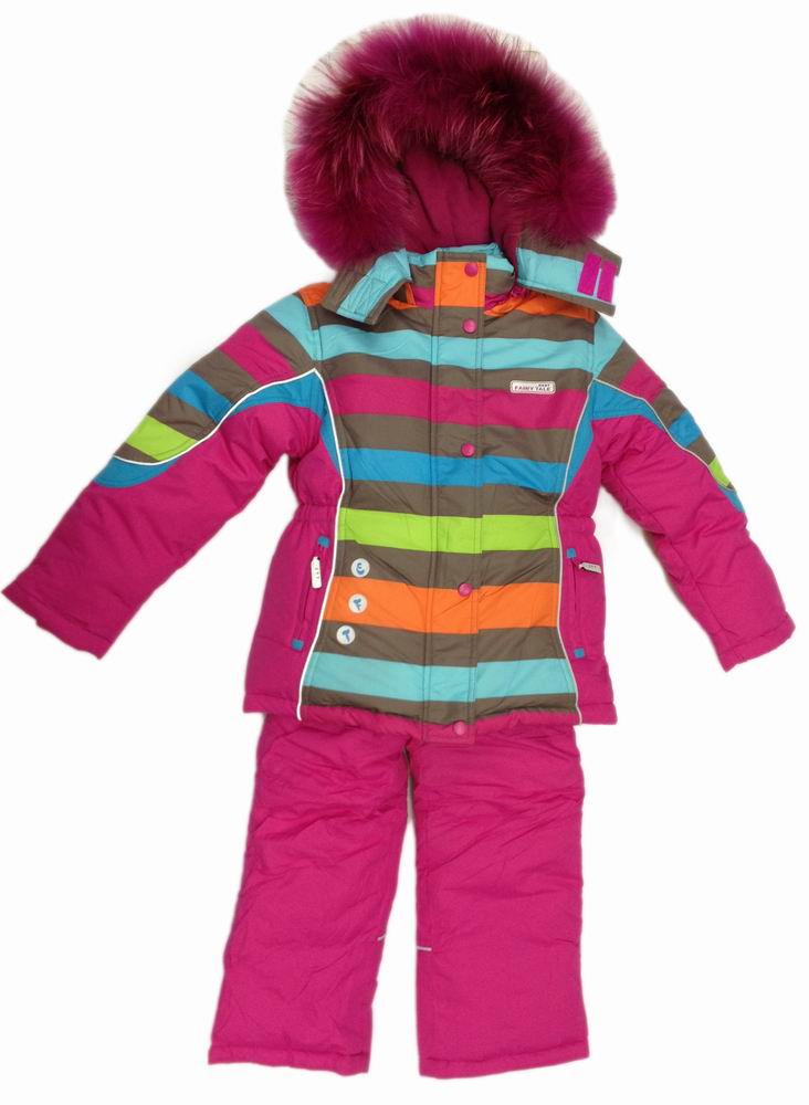 Описание: Комплект состоит из куртки на холофайбере с отделкой на капюшоне натуральным мехом - крашенный енот и полукомбинезона с грудкой с регилирующими бретельками и внутренней резинкой по низу брюк.