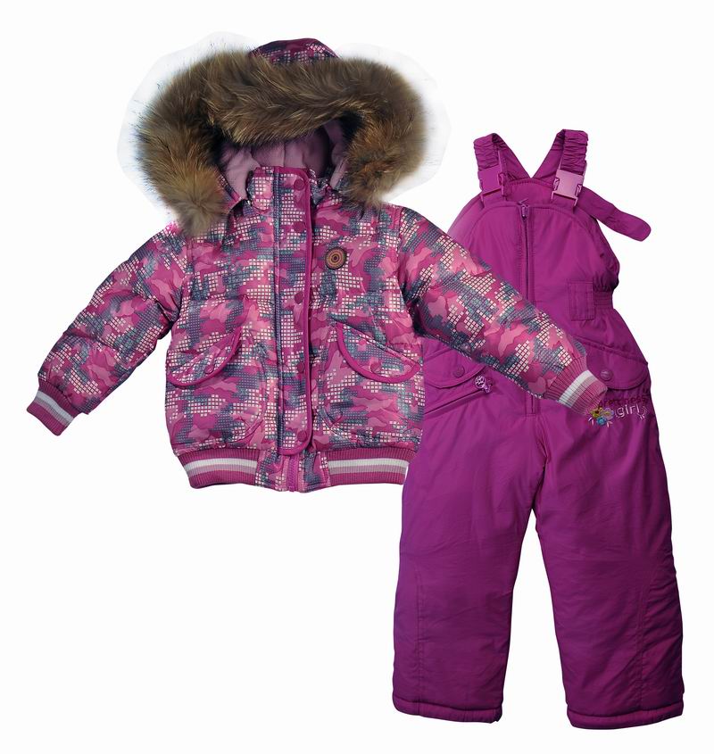 Описание: Комплект состоит из куртки на пуху с отделкой на капюшоне натуральным мехом - енот и полукомбенизона с грудкой с регилирующими бретельками и внутренней резинкой по низу брюк